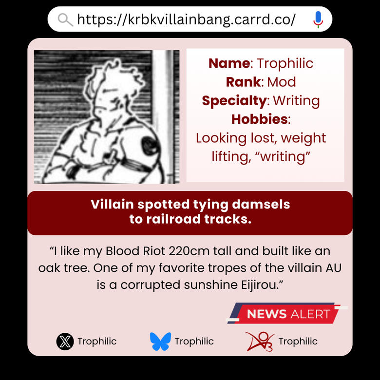 An alternative universe with at least one version of Kirishima or Bakugou as a villain. Pro-Hero, Mafia, Yakuza, Modern, Fantasy, any AU is welcome!